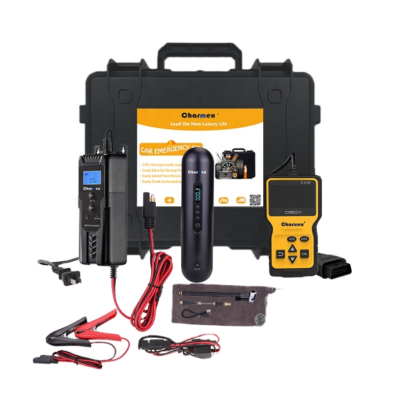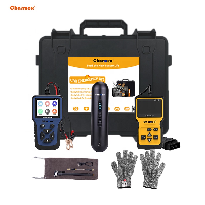 Charmex 1 में 5 सुरक्षा बैटरी परीक्षक OBDII Inflator आपातकालीन कार किट के लिए महिलाओं कार की मरम्मत उपकरण किट